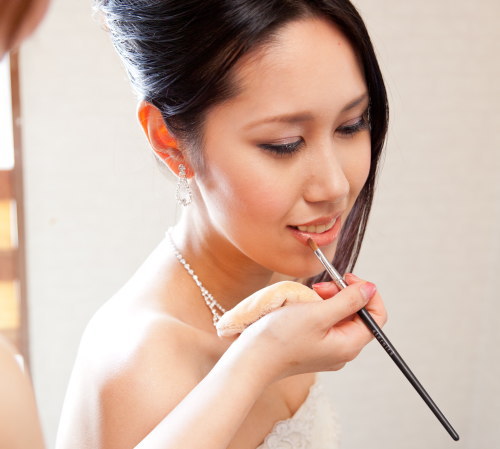 ブライダルの花嫁さんへ、式場への出張ヘアメイクは別途出張費をいただきます。